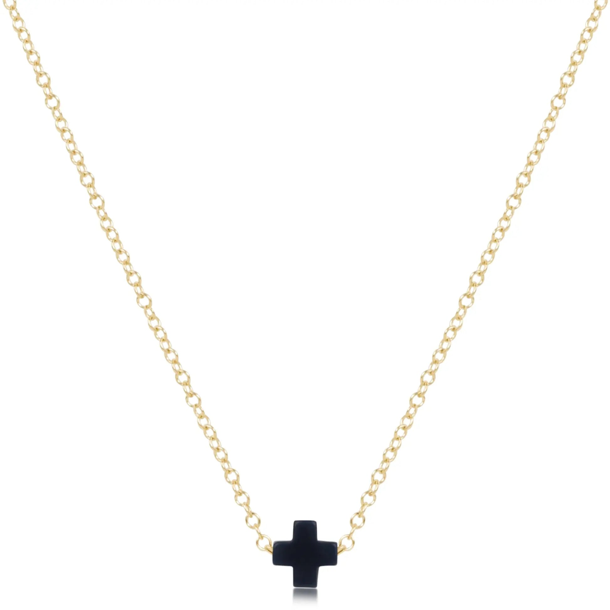 eNewton Signature Small Cross Gold Necklace | 16in Navy