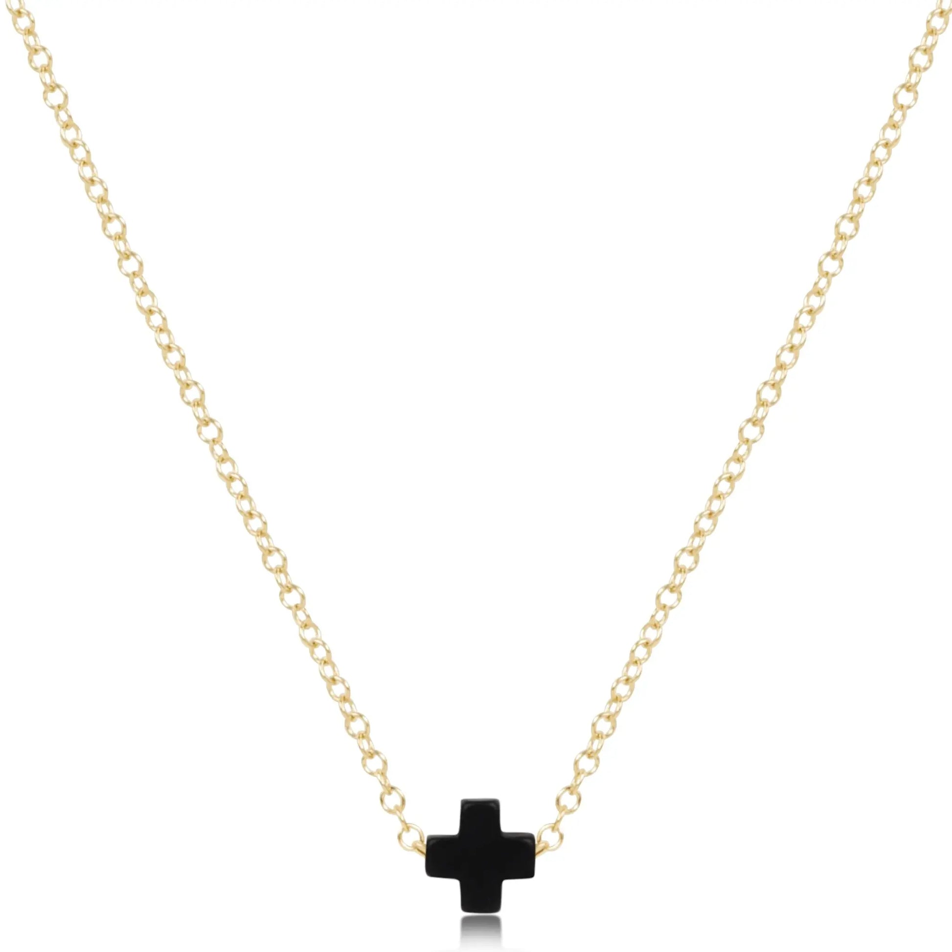 eNewton Signature Small Cross Gold Necklace | 16in Onyx