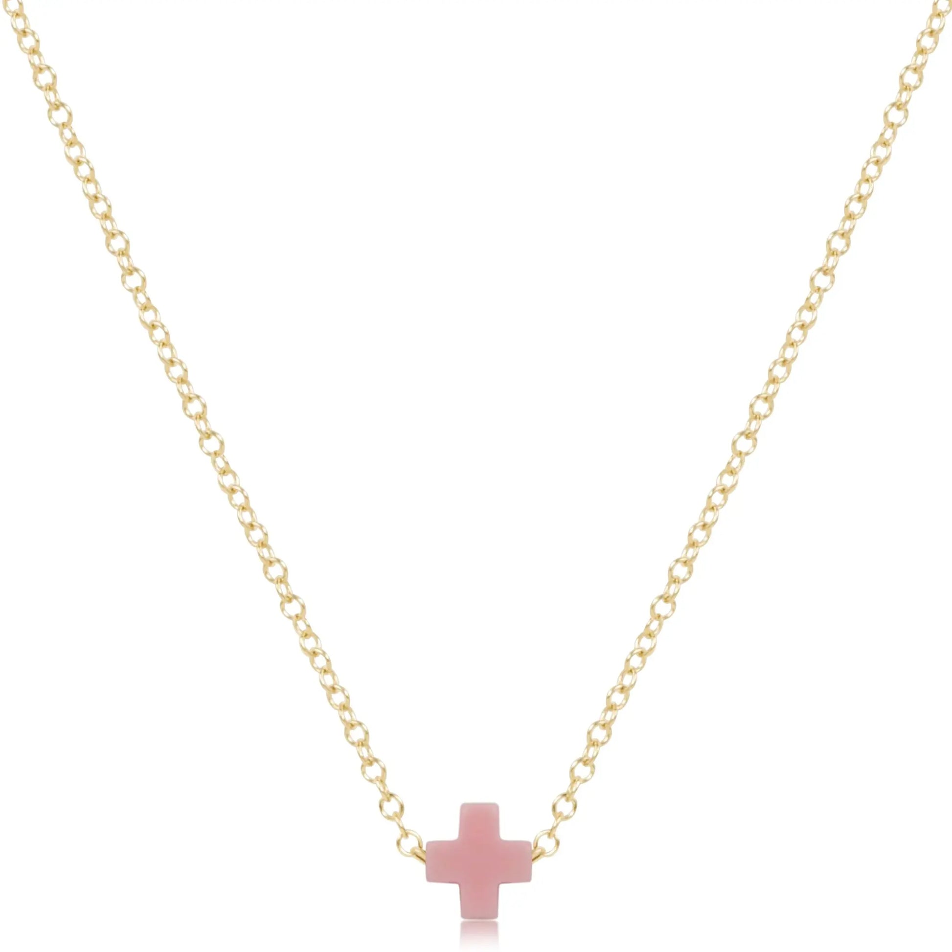 eNewton Signature Small Cross Gold Necklace | 16in Pink