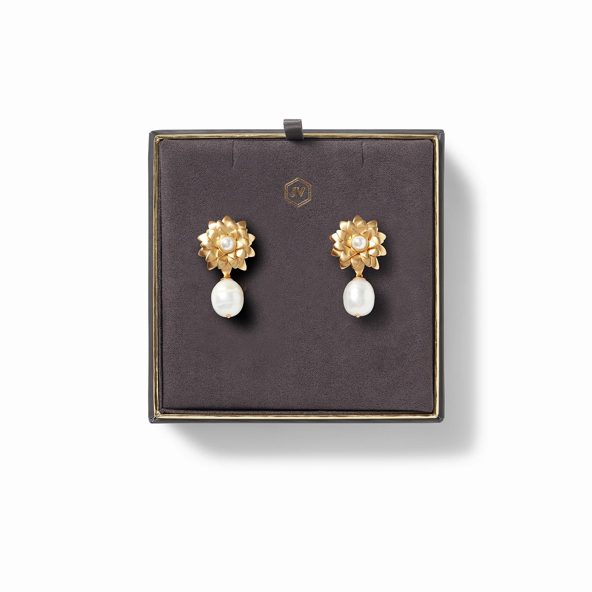 • 24K gold plate, glass pearl cabochons, freshwater pearl