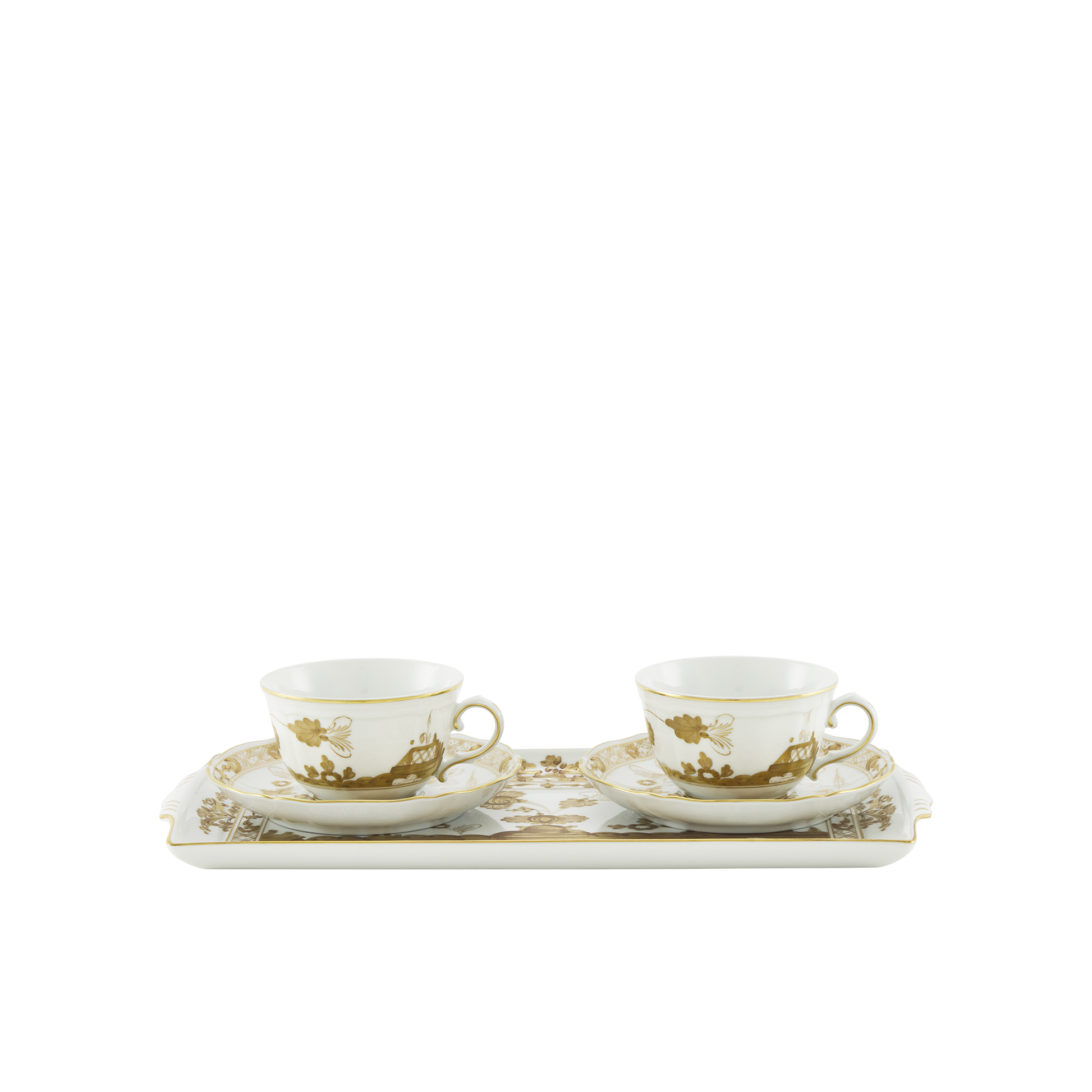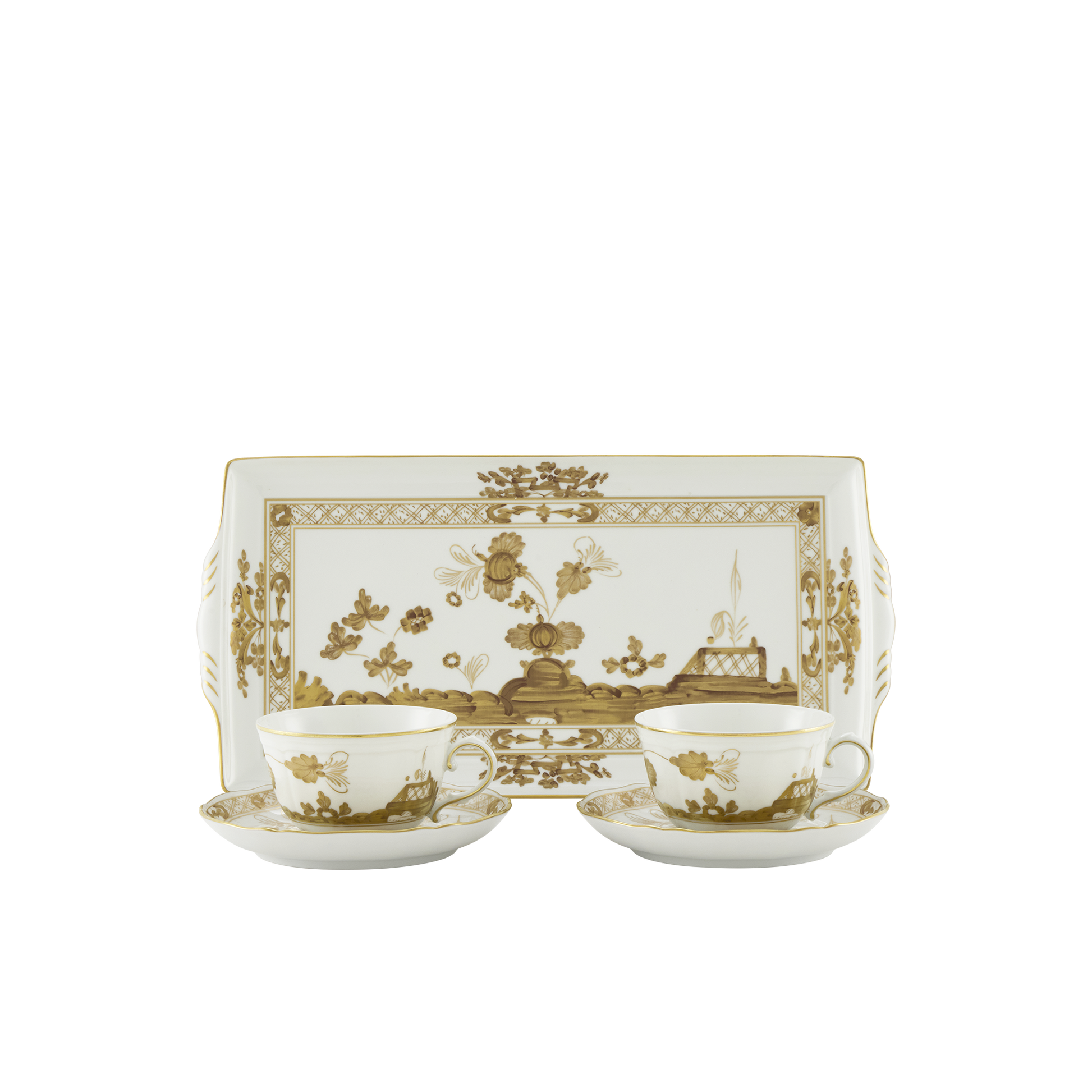 Ginori 1735 Oriente Italiano Aurum Tea Set of 2 with Tray | 5Piece