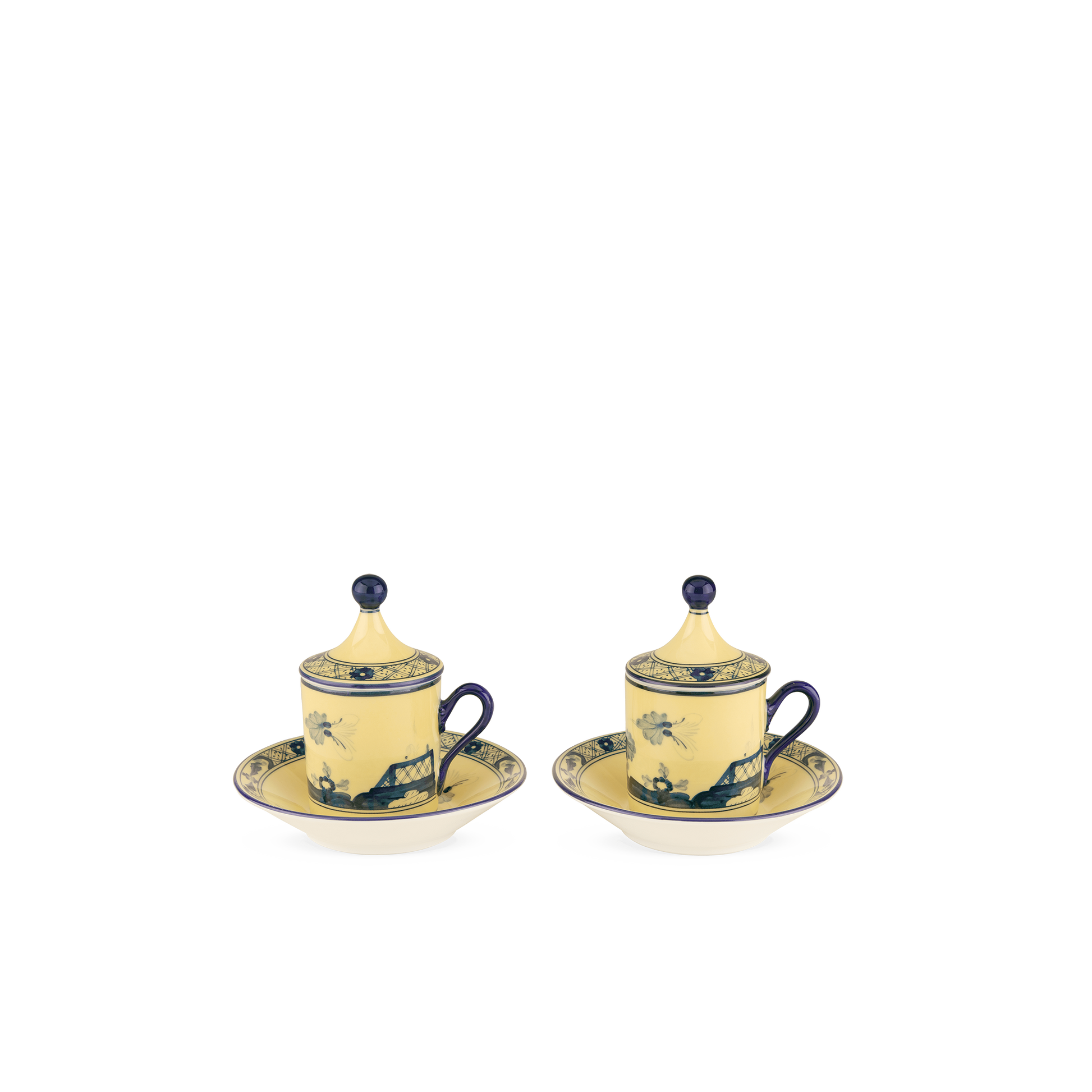 Ginori 1735 Oriente Italiano Citrino Coffee Cup with Plate + Cover