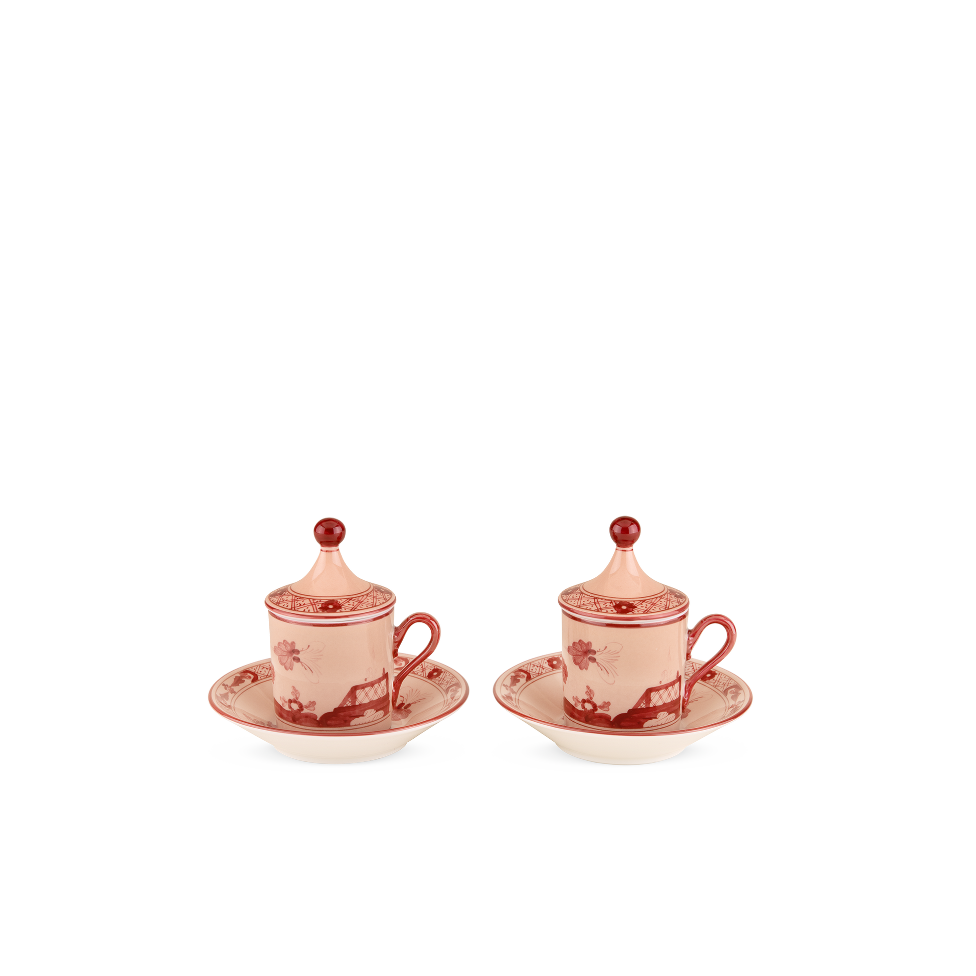 Ginori 1735 Oriente Italiano Vermiglio Coffee Cup with Plate + Cover