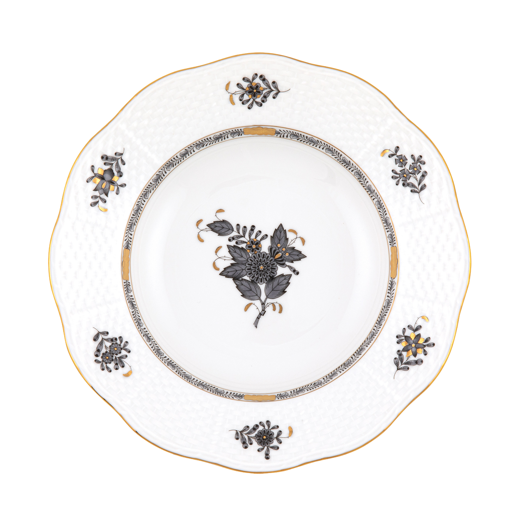 Herend Chinese Bouquet Black Rim Soup Plate | 8in