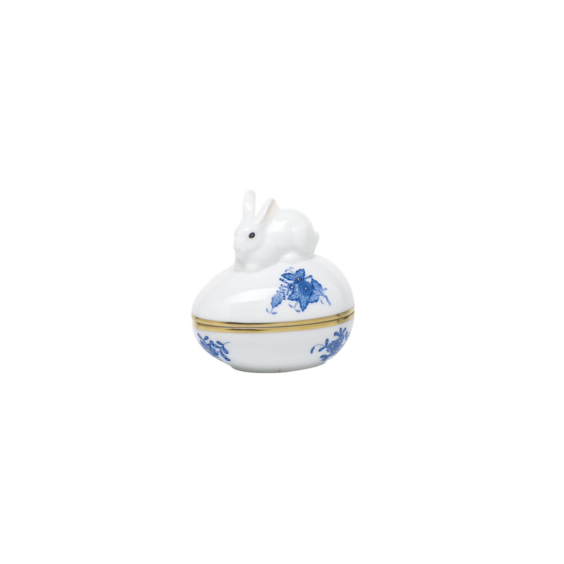 Herend Chinese Bouquet Blue Egg Bonbon Box with Bunny | 3x3in