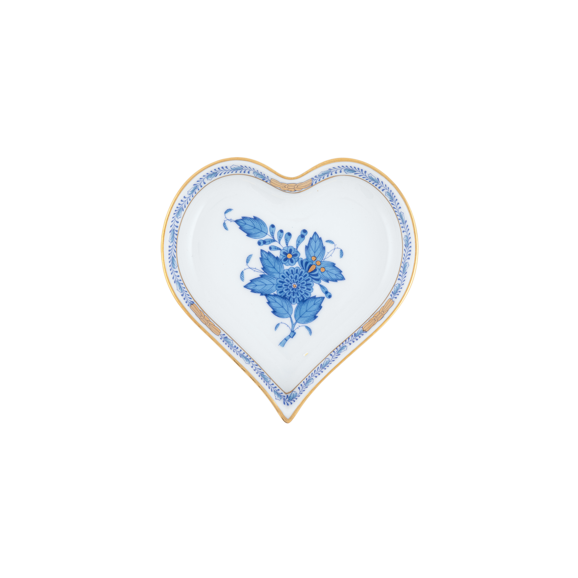 Herend Chinese Bouquet Blue Small Heart Tray | 4x4in