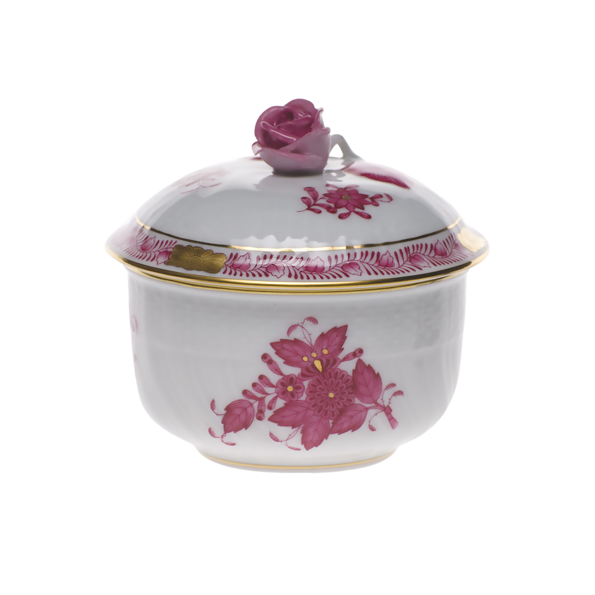 Herend Chinese Bouquet Raspberry Covered Sugar with Rose | 4oz