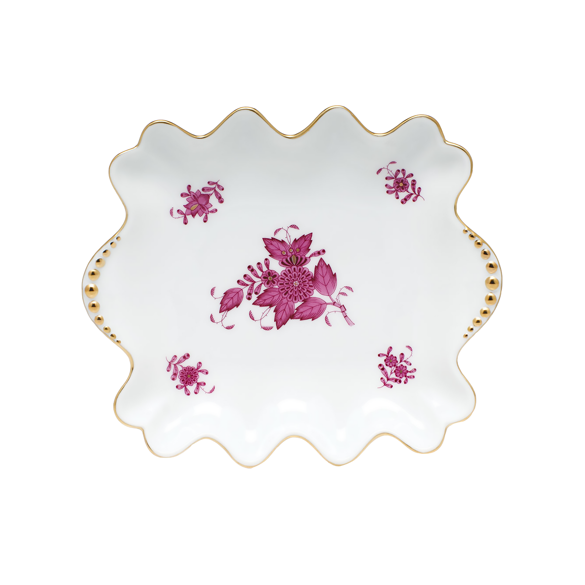 Herend Chinese Bouquet Raspberry Small Dish with Pearl Handles | 5.75x6in