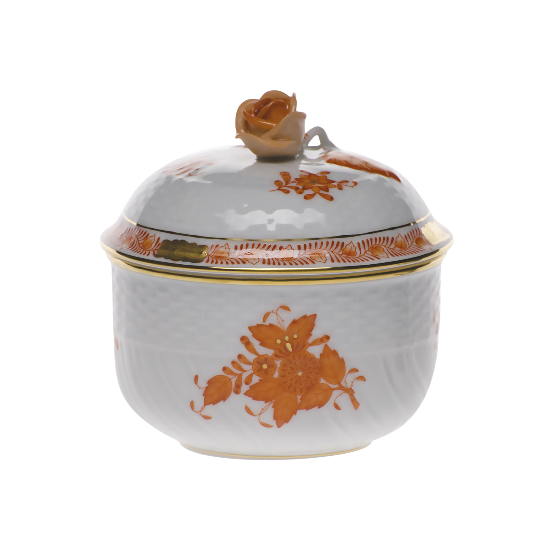 Herend Chinese Bouquet Rust Covered Sugar with Rose | 6oz