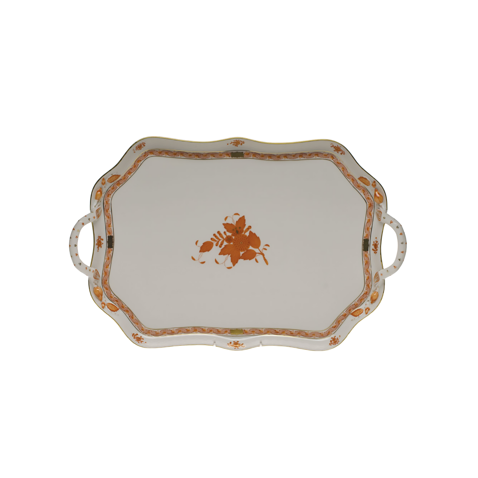 Herend Chinese Bouquet Rust Rectangle Tray with Branch Handles | 18in