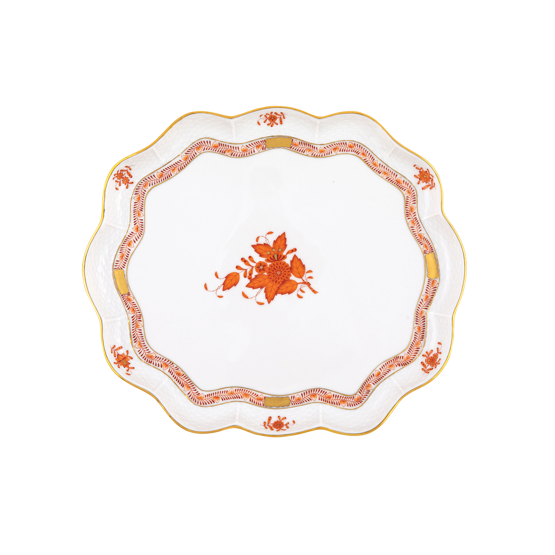 Herend Chinese Bouquet Rust Scallop Tray | 11.25x9.5in