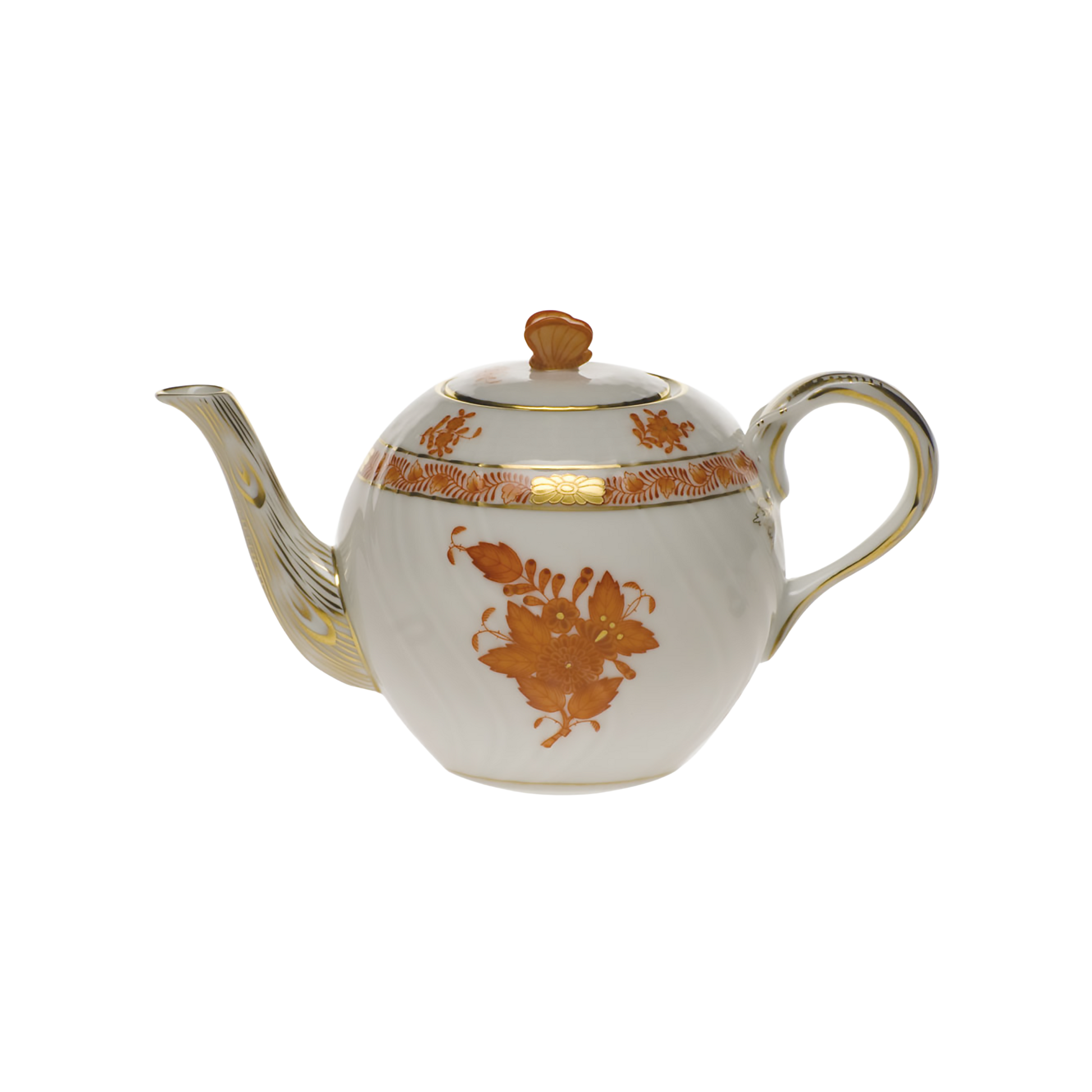 Herend Chinese Bouquet Rust Tea Pot with Butterfly | 12oz 4in
