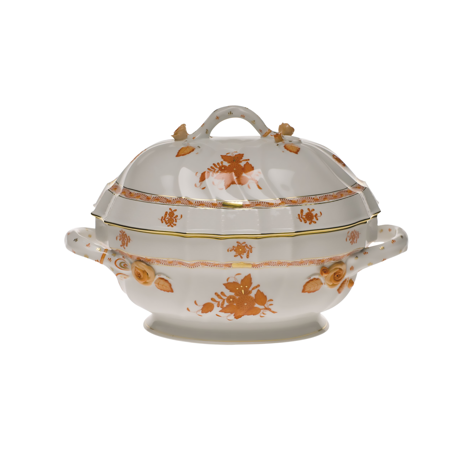 Herend Chinese Bouquet Rust Soup Tureen with Branch Handles | 2qt