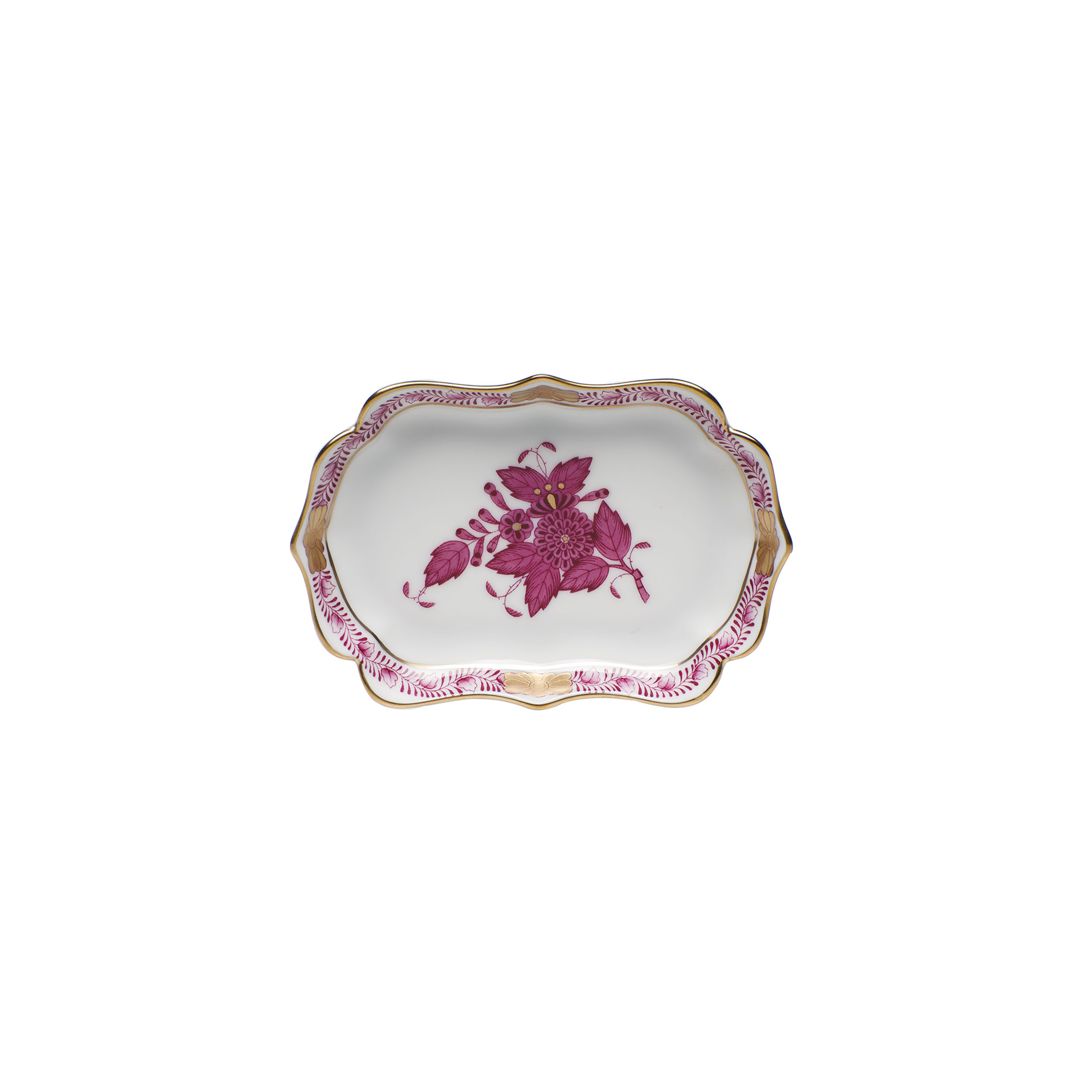 Herend Chinese Bouquet Raspberry Mini Scalloped Tray | 4.25x3in