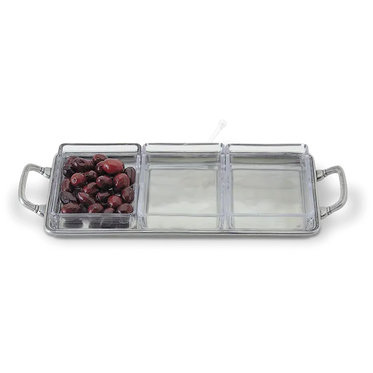 Match Pewter Crudite Tray with Handles + Crystal Inserts | 13.8x5.3in
