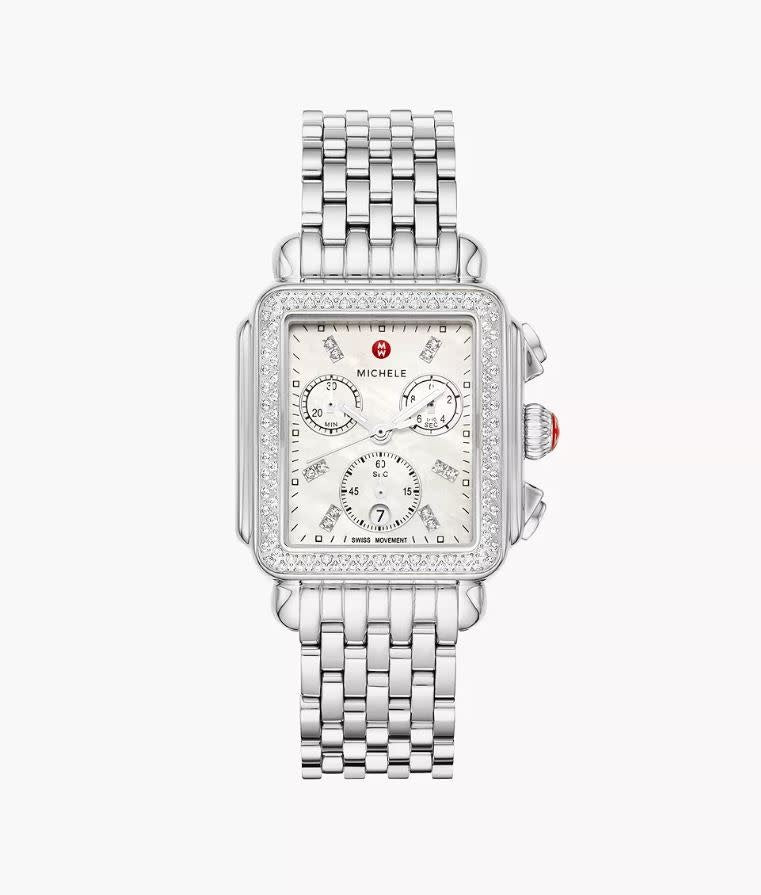 Michele Deco Diamond Stainless Watch | White Mop Diamond Dial