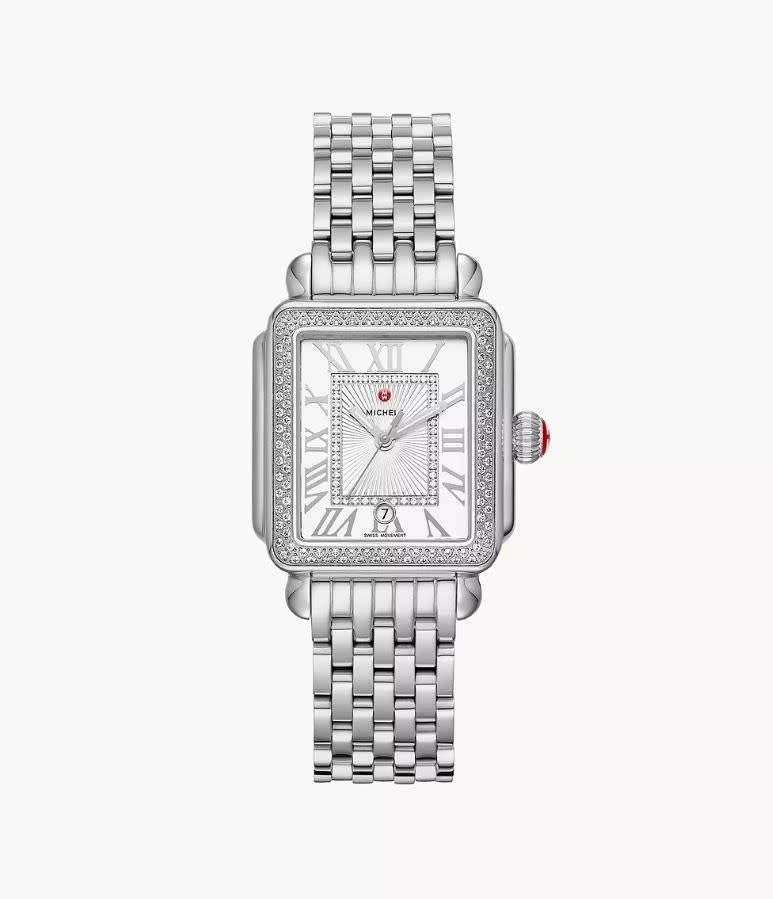 Michele Deco Madison Mid Diamond Stainless Watch | Silver White Sunray Diamond Dial
