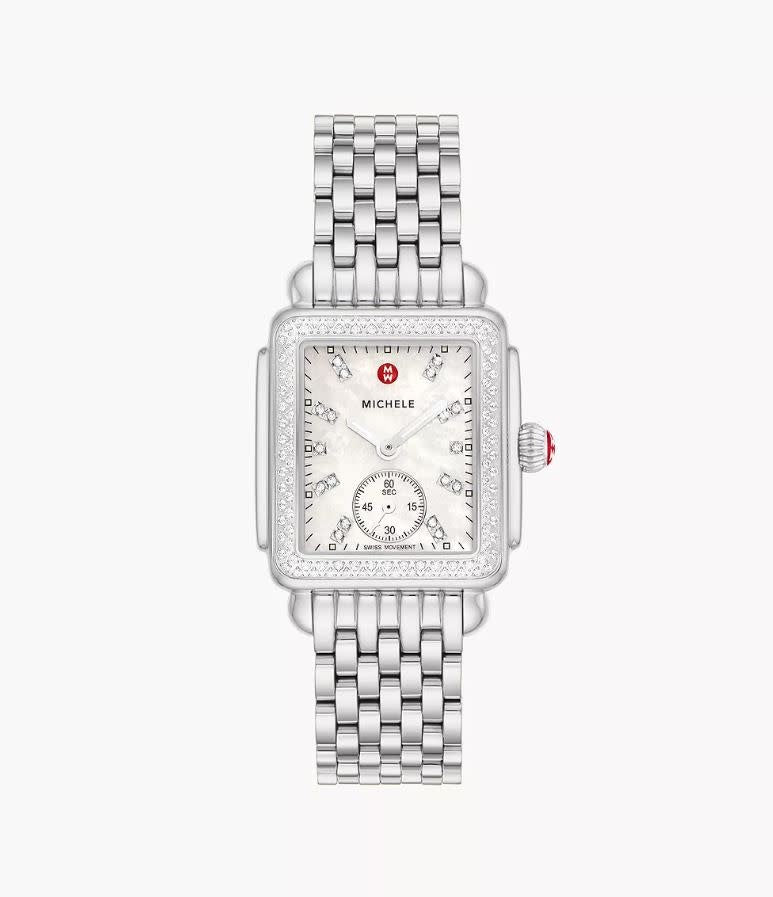 Michele Deco Mid Diamond Stainless Watch | White Mop Diamond Dial