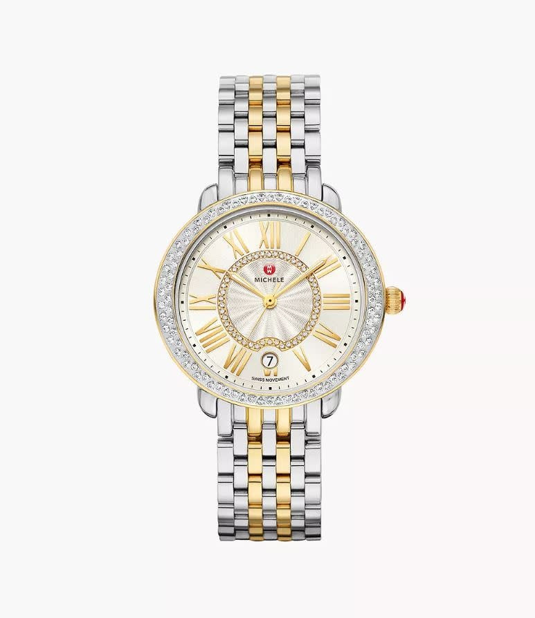 Michele Serein Mid Diamond Two-Tone Watch | Silver White Sunray Diamond Dial