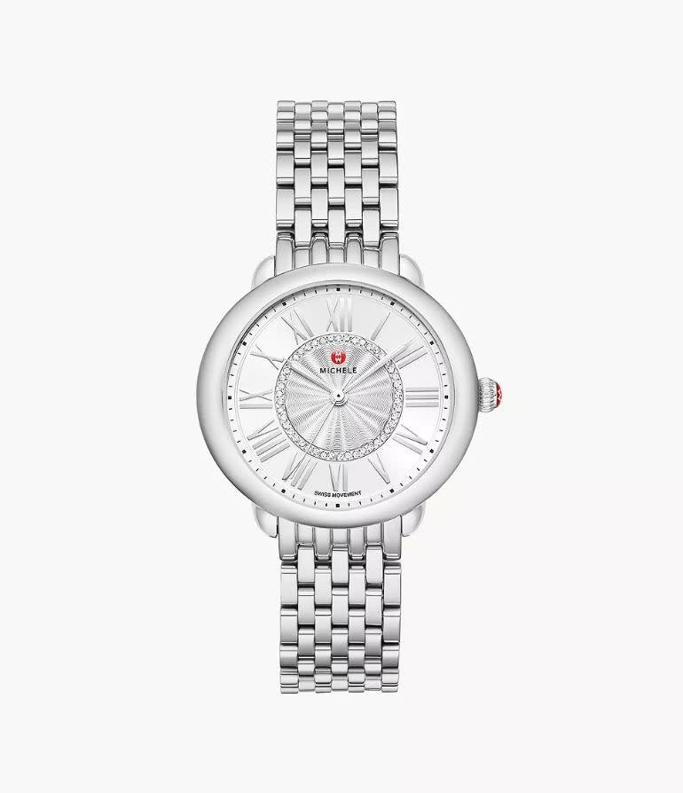Michele Serein Mid Stainless Watch | Silver White Sunray Diamond Dial