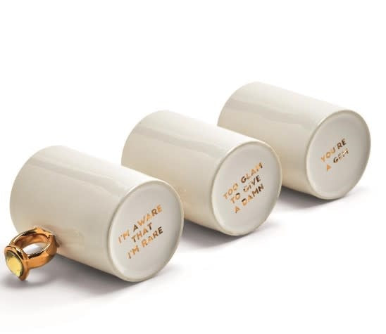 Porcelain three Assorted Colors And Sayings: Canary Yellow/I'M Aware, Emerald/Too Glam, Pink Diamond/Gem16 Oz