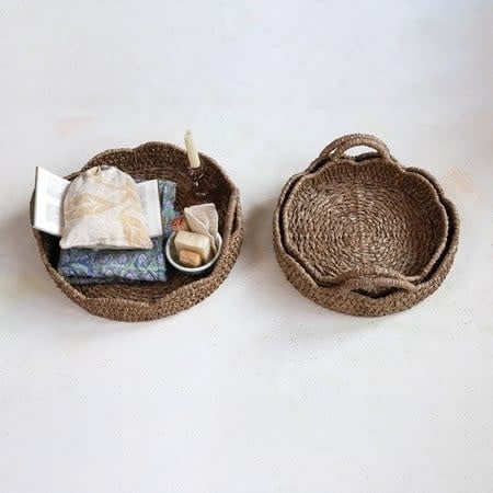 Rattan Scalloped Edge Round Tray with Handles | 19in - SET