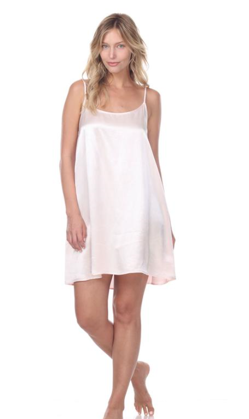 - Made With a Blend of Rayon And Silk Satin, This Knee Length Satin Night Gown Features Matching Braded Satin Straps, A Scoop Neck And An "A" Line Cut