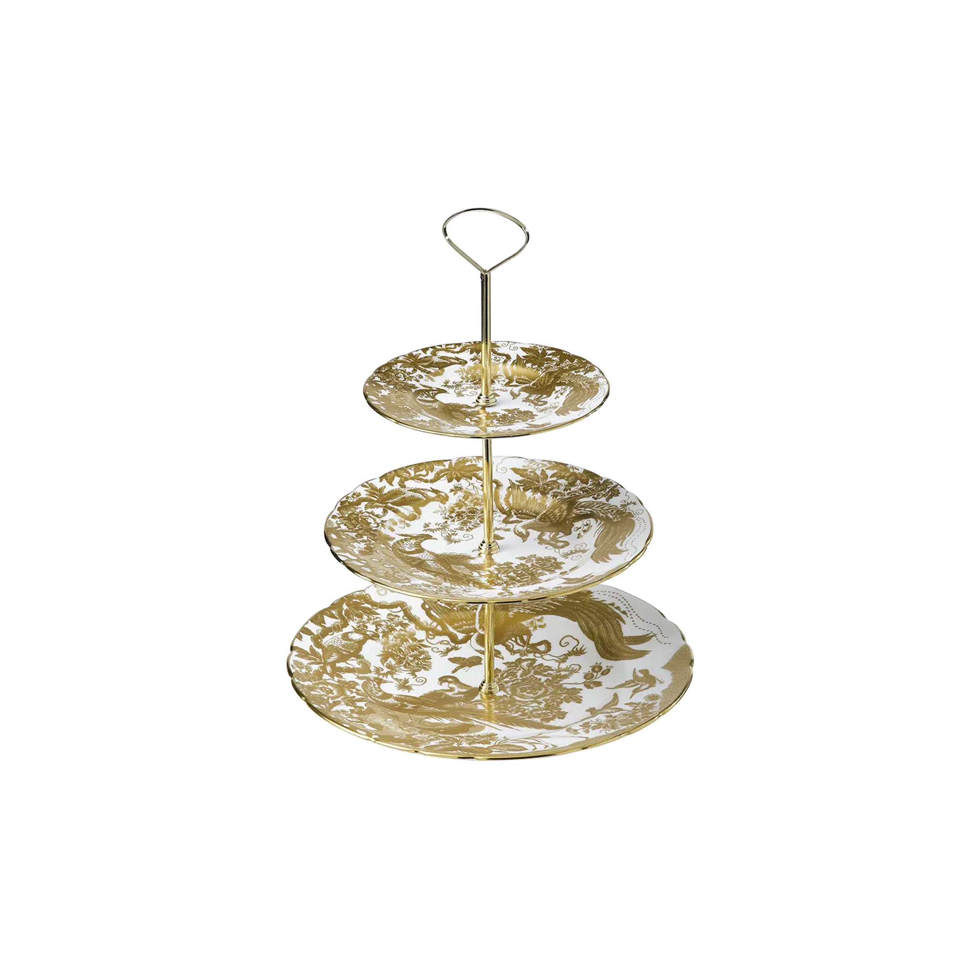 Royal Crown Derby Aves Gold Cake Stand 3 Tier | 13.4in