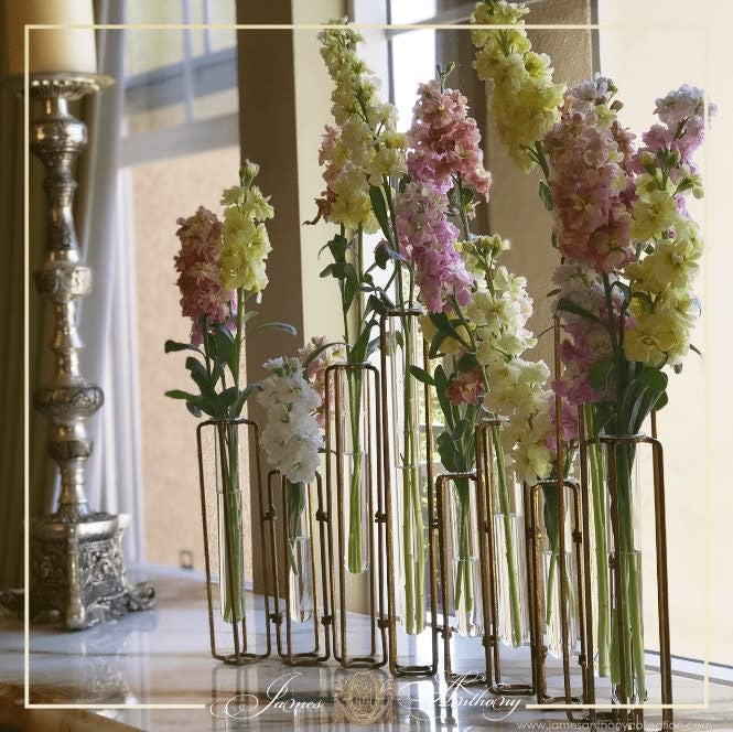 - Arrangement ideas: line up multiple vase sets along the center of a table, create floral rings down the center of the table