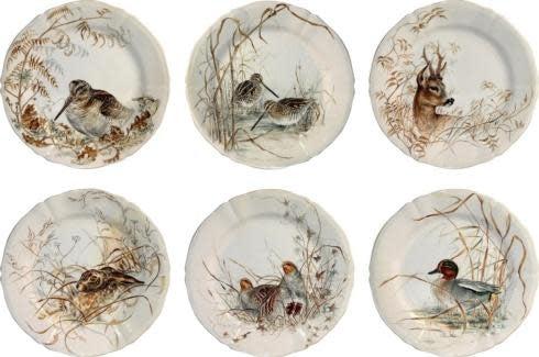 Gien Sologne Game Animals Dessert Plates Set of 6 | 9.25in