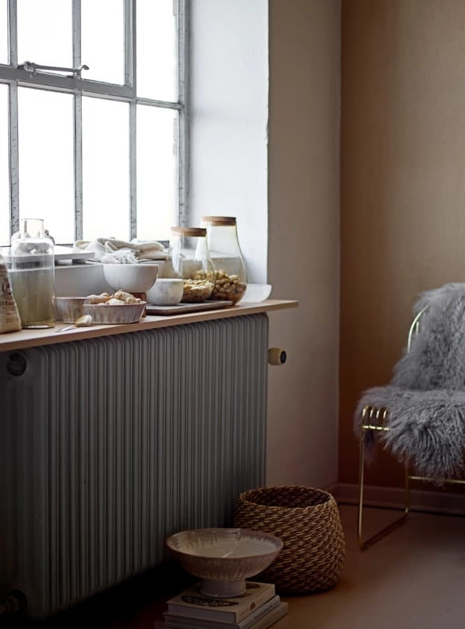 It has a unique cream colored reactive glaze that truly makes it one of a kind, so each one will slightly vary.