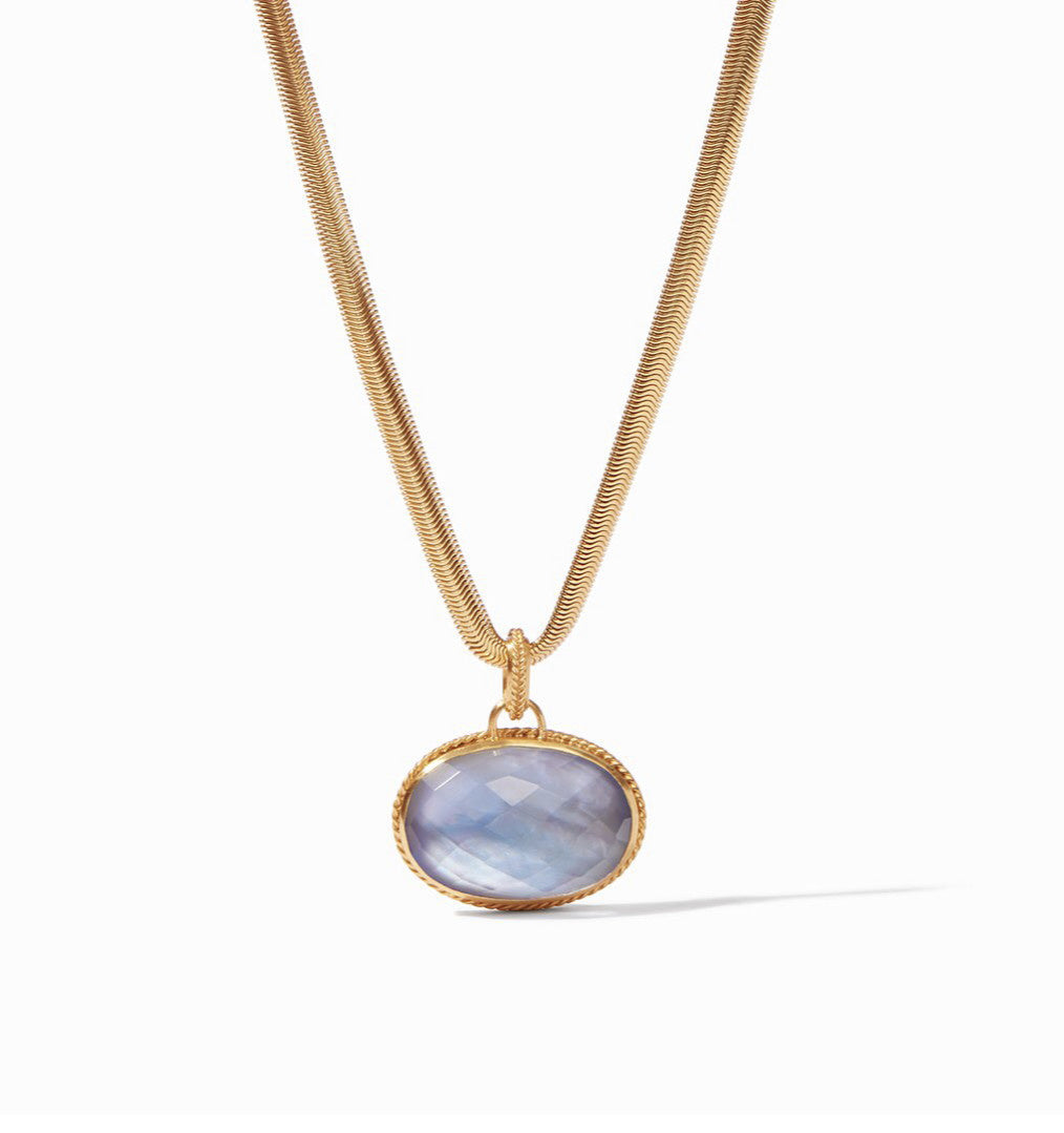 Oval gemstone pendant with snake chain necklace with toggle.
