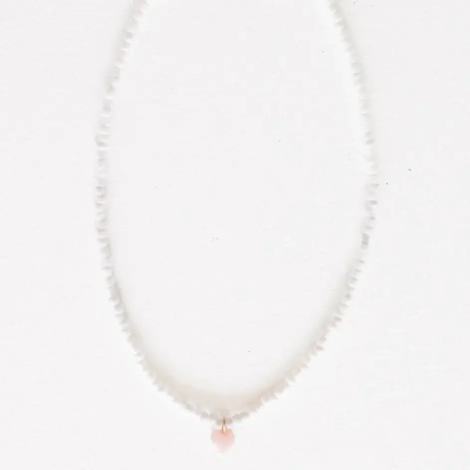 Whitney Rose Quartz Heart White Beaded Necklace|12.5in + 2in Ext